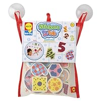 My 16 month old daughter can't go through bathtime without her foam numbers and shapes.She has so much fun putting them up on the wall and taking them down and then repeating again and again.However, I knocked off a star because she's currently teething and putting everything in her mouth...these foam items are no exception.The numbers and shapes are on a label that is adhered to the piece of foam.Under normal use, the label would probably not come off, but since she's been putting these in her mouth, the labels are coming off.Still a great buy though!I bought these as a Christmas present for my 18 month old. After all the excitement of unwrapping presents we tried out these bath stickers and they have been a hit ever since. I like to read to my daughter while she plays in the bath, not that she is really paying attention, and as I read she places each of these stickers on the wall and then brushes them off and puts them back up. I also have the alphabet ones and the soup set which is lots of fun. My daughter was already crazy about bath time but these have made it even more fun, she won't take a bath without them! This particular set comes with a mesh storage bag with suction cups that has been really great, not only do they provide a great place for these toys to dry off and not get gross but my daughter likes to put each little shape back into the bag, so it has been a great tool in practicing clean up time.Please make larger. Would like larger pieces. Otherwise we like the idea and we like the numbers and shapes theme. We think it is cute.