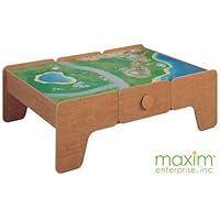 This is an overall disappointing table.It is difficult to tell from the small pictures provided by the website.But, this table is NOT made of wood, but some particle board-like material composite.That's not really the main issue.The main issue is that the wood-like finish is extremely thin.So thin, that the stickers the manufacturer puts on the toy to indicate how to assemble the table PULL OFF THE FINISH when you remove them!Tears the finish off like a layer of cardboard.The picture top is 3 three separate pieces and the picture doesn't line up.The plastic edging is also not adhered very well and is coming away from the parts in several places.