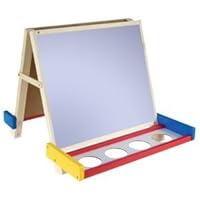 My kids love playing with the easel... Unfortunately, a couple of days after we bought it, one of the supports that holds it together when unfolding broke when we were taking it off the table... It still works, but it looks like the latch should probably be metal and not wood given the stress on it...Additionally, it could use some rubber on the "feet" as it's designed to sit on a table and slides without them.For the good, the dry erase board is wonderful, and with the no-spill paint cups available separately, we've substantially reduced the mess associated with painting.