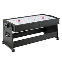 We've been playing for about two weeks. Air hockey is nice and works well although power cord too short. Pool is decent with all accessories included but cloth damages easily. Table rotates well but black frame finish scratches. Ping pong lay on table ok and is two pieces with seam under net where it belongs. Overall satisfied with product as decent value but beware of purchasing through Dazadi.