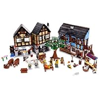 Back in the 1980s, I was (a) rather smaller than I am today, and (b) totally obsessed with LEGO. I especially loved the medieval-themed LEGO sets, because knights are cool and I have a fondness for history. But even then, it bothered me that the medieval LEGO sets almost always consisted of castles, castles, and more castles (with the occasional catapult thrown in for good measure). I longed to build a huge medieval *village* for all these castles to protect; and here, a mere 30 years too late, is the village set that I craved as a child.Well, I guess it's a bit much to call this set a whole village's worth of LEGO. It consists of a tavern, a blacksmith's shop/stable, and a food vendor, so it's really more like a town square. But the buildings are wonderfully detailed and colorful, and if you arrange them carefully you can create the impression of a vibrant community. It helps that the set comes with a fairly generous compliment of LEGO minifigures and animals, including some very peculiar chickens. (Almost unbelievably, it also comes with what appear to be two LEGO "turds," which you're supposed to put on the floor of the stable!)