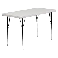 I got this table because I had a similar blown grey table that was not adjustable, and for some reason most tables (and desks for that matter) are designed too HIGH to promote good sitting ergonomics. This one is just what I needed and is heavier and seems quite sturdy. The metalwork under the legs seems a little bent and most notably the wrench that comes with it is metric and it really really sucks and mine was completely stripped and useless by the time I tightened the last nut. So expect to waste a good deal of time getting the screws tight if you don't have a metric wrench set (it's around 7/16ths) but in the end, this is a good table.
