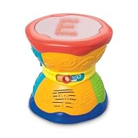 Overall, I would highly recommend this toy.My daughter (and husband) like playing with it.She loves the sounds, rolling it around, chewing on it, and the lights.Very good buy!My son received this toy for his first birthday. We thought it would be a fantastic learning device for cause and effect (banging = sounds). Instead, we discovered what another reviewer did, and that's how inaudible the actual drum sounds are. There is constant background music on each setting that completely drowns out the drum sounds. If I show him how to hit the drum with his hand, he'll do it for a few seconds. But soon, he walks away because he can't distinguish between the soft drum noise and the rest of the music that is playing and doesn't realize he's doing anything at all. It's a little frustrating, but maybe it'll be of more value to us when he's more familiar with the alphabet. Light show, maybe, but definitely not a "drum."
