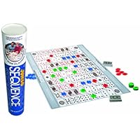 Sequence is a game using two decks of cards, where players try to match a card in their hand to the card on the playing board.Get five in a row, a sequence, and you freeze them in place.Do this twice to win.Like all very good games, the rules are simple but play can be complex.Do you build your own sequence or do you block another player?Jacks are wild and can be used to remove a played card or on place of a card.This becomes a game of luck, drawing the right cards.Skill, playing with the right mix of building and blocking and strategy.Easy to learn, it will keep you busy considering the possibilities for hours.