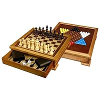 My father shipped this to us for Christmas, and my girls (ages 4 and 7) really like it. I think it is a good-looking set and fairly well-made. There are wood feet on each of the corners which raises the board nicely. We have it on display on our coffee table which I am hoping will be an invitation for others to play it. The Chinese checkerboard can be removed to unveil the checkers and chessboard. The Chinese checkerboard is blank on the other side so I used some tape to make a tic-tac-toe board. All of the game pieces as well as the Chinese checkerboard can be placed in a drawer; however, it is a snug fit. There is a hole in the middle of the drawer that enables you to open it, but it is a little difficult to get your fingers in it. Another minor criticism is that holes in the Chinese checkerboard are not very deep so the plastic marbles can be easily knocked out of place. If a checker piece is kinged, the pieces to do lock together. As far as the backgammon game is concerned, it is inside the drawer. I do not know how to play that game so I will have to read the basic instructions that are provided. I think this game set can last for many years.