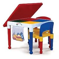 I read several reviews on the Toys R Us websit and decided to by this table based on the reviews.I do not like this table at all.Due to my boys age we are using Duplo's but they barely work on the table.You have to put your hand underneath the table and push up to get the Duplo's to snap in place but as soon as someone touches the table they snap off.I thought maybe it was just Duplo's and Lego's work better.Nope same situation.Then I thought we would just keep it for a play table but the chairs are flimsy and the seat is a smooth plastic so the boys keep sliding out of them.We will be returning this item.However if after reading my review you still think eh I'll try it don't buy it here.It's more than double what I paid for it.Want 2-in-1 Kids Tot Tutors Construction Table W/chairs Discount?