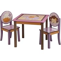 I love the table and chair design!However, the table and chairs arrived with nicks and scratches in the wood and paint.The table is very sturdy and my toddler loves it!We'll be using this for quite some timeshe can probably use it for another 2/3 years.I purchased this for my granddaughter to complete her room. She also has the Once Upon a Pond Toybox and matching lamp. I would recommend this set as it is very sturdy, well constructed and most of all she loves it.
