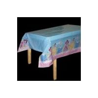 This is a nice plastic princess long table cloth.It has beautiful pictures of princesses on the outer edges and is blue in the center.Since I wanted it for a smaller round table, I cut it to fit and still had enough left over to cover the butcher block table which was used to hold the birthday gifts.It's meant to be used only once since it made of thin plastic, and it worked out great for our daughter's Princess themed birthday party.We aren't throwing it away yet since we can use it when children's painting projects are being done to keep the table and floor free from spilled paint.You can also find this exact table cloth in discount stores.