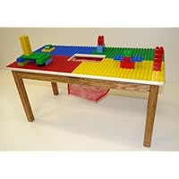Read Best Reviews of DUPLO OR LEGO COMPATIBLE PLAY TABLE WITH STORAGE POCKET & SOLID OAK WOOD LEGS AND FRAME - BUILT TO Here