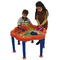 My kids (2 and 3 years old) love this sand table! The three sections provide separate space for each of them to play in, andits just the right height for them. I like how there's a drain hole for water in one section, a solid section for sand, and another section that's shallow. The shallow section kind of threw me off at first, but it turns out to be a great place to pile toys on or "drive" cars over. The reason I rated it 4 instead of 5 stars is because the plug for the water section leaks.