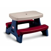 This single unit picnic table serves many purposes, and I would not be without it.It is a bargain at any price.I bought this table for my 18 month old son.Because the seats are set too close to the table top, when children try to stand up they cannot straighten their legs which forces them to sit/fall back down.The bench seat is too narrow which caused my son to go over backwards and hit his head on the ground.I noticed this problem when I purchased the table but thought maybe on grass or under constant supervision it would be ok.Because of the lightweight nature and the seat/table configuration children are also able to fall back and pull the table over with them.Table top also moves somewhat although this probably wouldn't be a big problem if the rest was Ok.We used it twice and then returned.Great idea and great storagebut the potential injury isn't worth it.Also, I don't think this would fit any child over 2, and definately not to age 5.
