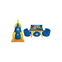 I ordered this for my son but through another web page, where I paid only 40 for it brand new and yes it was the exact one. lime green rocket with orange and blue on it. 4 chairs. I got this as a sale item via a military web page but on average you can find it for around 70 or 80 dollars... so do your research!