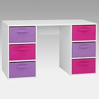This is a wonderful no-nonsense desk that doesn't take up too much room yet offers a roomy work area for homework and computer. The six cloth drawers are sturdy and deep that are perfect for storing all your childs crafts!
