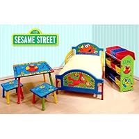 My sister purchased this for my child. My child loved it because it was ELMO!!! Elmo on the table, bed, and storage shelves. Easy to assemble and the instructions included were great and easy to read. As with most children, my child loved Elmo only for a short time so it's best to go with something more neutral where you can just change the bedding. The paint on the legs of the chairs & the table started chipping off and it became a concern that our child would eat it. The side railing could pop off if enough weight or pressure is on it. The extra support legs in the middle bent inward from sliding the bed and since it's plastic there wasn't anything we could do about it. There are some flaws in this set but, the bed and shelf held up pretty well. 3 years later we are still using the storage shelf for toys and books.Want Sesame Street Elmo - Room-in-a-Box - Toddler Bed / Table / Toy Bins Discount?