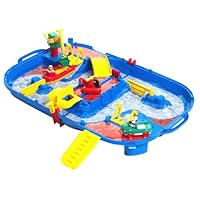 We bought this for our 3 year-old to put on the patio table for water play and pack upfor the beach, but still fold-and-go for travel and convenient storage.Set-up is not to difficult, but the instructions are pretty poor.I had to kind-of trial and error the installation of the rubber gasket pieces that join the two halves and make it water-tight.The water doesn't leak out, but be prepared for plenty of spillage with play-both over the sides and the gaps in the middle of the toy--this is not something you can just put a towel underneath to absorb.It held up well, but I was disapointed to see that you have to dis-assemble them every time you want to fold and store this item...wondering just how long it will remain functional.When you fold the table, there are 2 large holes on the bottom of the case that the smaller pieces fall out of.I had thought I could fold-and-go with all components nested inside, but that is not the case...to travel well, you have to hold the case upside down, with the handle towards the floor or the contents will fall out.Also, putting all the parts inside the case for folding is a bit of an exercise in 3D puzzle-solving...it took me a few tries.The table came with decals to decorate your harbor/roads, but we elected to skip them altogether, so I can't comment on how well they hold up to the water/sand/etc.Also, no matter what I try, I can't get the water pump to work at all-not at all essential to play-time, but annoying to me.Be sure you play in a place where you can just dump out the water, as there is no drain plug, and if your pump is also defective, you can't pump out the bulk of the water into a pitcher or other container for discard--I learned this the hard way. Overall, Mommy's a bit disappointed with the lack of forethought in the engineering of this product.