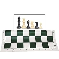 Buy Best Value Tournament Chess Set Filled Chess Pieces and Green Roll-Up Vinyl Chess Board Game Now