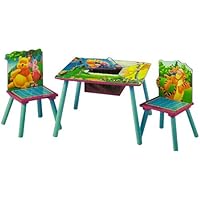 This table is very cute. I know my granddaughter will love it. Problem is it lacks a heavy duty finish on legs. The applied stickers on the chair were placed by an amateur. They are crooked and do not square up to the seat. It is quite colorful on the table top. Unfortunately, it is a decal and my table had scratches on the main surface as it came out of the box. It is cheaply packed and therefore the messed up parts pose a risk to a toddler. It will most likely continue to lose the decal as it is played upon. I will be contacting amazon to see if it can be replaced with parts in new condition, since this is what I paid for. The unfortunate other part is this is Christmas. No time to get it changed out before handing it over to my first grand baby.With better packing this might be avoided..