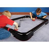 It's a great game for an air hockey fan.It's versatile and can be played on multiple surfaces.It's lightweight and portable.An A+ buy.I gave this to my son for his 7th birthday. It was easy to put together. The size is perfect and can store under the bed. The best part is it works great on carpet and ceramic tile floor. My dining room table is old so we prefer to play it on the table so that we can stand up. I love the fact that it requires no batteries or electricity. It is also very quiet. We had a party for his friends last Saturday and the all of the kids all enjoyed playing it.