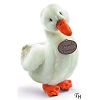 Our son loves the "Suzy Goose" books by Petr Horacek so we decided to try to get him a small goose stuffed animal.Uh...easier said than done.After days of searching, we finally happened upon this one and we have not been sorry.He carries it around and says either "quack" or "honk" depending on whether he's decided it's a duck or a goose.It seems to be sturdy, but it is nice and soft.Recommended if you are in the market for a small goose.