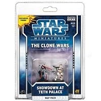 Then came this product: you get two pre-packed minis and their stat cards, and a big (24x36 in.) double-sided battle map. While it's a bit expensive, it's definitely worth it for those of us who need more battle maps and a couple extra minis (this set comes with Asajj Ventress and a Clone Trooper).