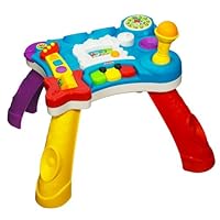 As a teacher, I love all the learning going on with this table.The table encourages Gross-Motor Skills, Fine Motor Skills, and many Early Learning Skills.In fact, the turntable has DJ sound effects and teaches opposites, the keyboard plays notes and teaches colors and ABCs, the guitar plays music and teaches shapes and colors, the drum plays a beat as you tap and teaches numbers and counting!It's got a little bit of everything.