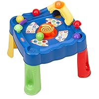 One caveat though: most all of his other toys have an "off/low volume/high volume" OR a "low volume/high volume" switch.This one has just an on/off switch.Though it turns itself off after one song (unless the action plungers are pushed), the music plays at A SINGLE LOUD VOLUME.Too bad.Would have made this a perfect toy.My son got this for his first birthday and it was an instant hit. He loves watching the balls spin and every new toy he gets he takes over to his ball table to see if it spins. This is one of the only toys he has recieved that he has never lost interest in and uses every day. He is a rough little guy, as all boys are, and it has held up quite well! My only complaint was that it is a little loud but a piece of tape over the speaker solved that problem. I would recommend this toy to any parent. Whether you have a girl or boy any child who loves balls will love this toy!!We bought this toy for our daughter when she was 7 months old.