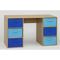 This is one decent, sturdy, well built desk for a young boy. It`s not too small, not too big, just about right and big enough for him to do his homework comfortable. Drawers are actually fabric boxes and they are huge, so he can fit there most of his stuff. And yeah he absolutely loves it!