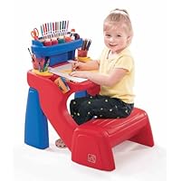 We purchased this desk 6 months ago and have been very satisfied with it.At first, all my son wanted to do was climb on the desk and play with the light.He is now 2 years old and he will sit on the bench and color with his crayons or play with his playdoh.It is very easy to clean the dry erase surface and the plastic desk.He even enjoys putting the crayons in the holes and placing his tiny trucks on the top.This desk is much better for my son than the desk with a separate chair.He would be moving the chair all over the house whereas this desk has the chair attached.