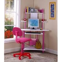 Buy Kings Brand Pink Finish Corner Workstation Kids Children's Computer Desk Now