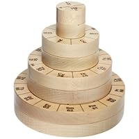 - Element symbols and atomic numbers are burned into eight hardwood disks, arranged symmetrically around a central axis