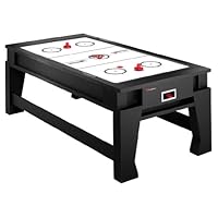 Renting rooms in my house the last six months has helped me tell what amenities make the most difference in keeping my roommates (i.e. my customers) happy. This table, with the right accessories, has been huge. When I moved I talked to a salesman at a pool hall that deals in Olhausen tables and he said people have trouble getting rid of cheap tables like these. How cheap is it? I saw an air hockey table at a thrift store, nothing special, for $500 and they don't deliver. Speaking of which, this thing weights about 450lbs in the (single) box they deliver it in! And while most shippers will put an item like this in your garage if your driveway is short and level, they have the right per their shipping contract to literally leave it at the base of your driveway and, well, drive away. It's so annoying when people give negative reviews based on the 'facts of life' with freight shipping.After four months or so of fairly extensive use it looks like some of the black vinyl/plastic covering over the particle board will have to be glued down eventually. The table comes with levelers and even though mine is in a garage that slopes toward the street slightly with some small squares of plywood and a carpenters level it's now exactly level, which is a big deal for billiards. You'll want to replace the billiard cues, or at least have some better ones available for serious games, and also triangle pucks are a lot of fun to play with. Maybe a nine-ball rack, a set of swirl balls, and Aramith makes a fluorescent tubing/balls set for billiards where I had enough tubing left over to accent the rails on the air hockey side.