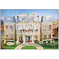 The Calico Critters Cloverleaf Manor is huge and impressive looking.Grandma gave it to our 5-yo daughter for Christmas and the look on her face was worth every penny. I admit that I have been very much against plastic dollhouses, but since this was a gift, I decided to check it out before I passed judgment. Daughter has two other dollhouses that are wood and very sturdy, this one, however, was tailor-made for her beloved Calico Critters. It is very deep, which is good for fitting in a number of furniture sets, which I have to admit the other houses do not. I have included a photo of it on the Calico Critters Play Table. It just fits folded up, to open it and play you have to remove it from the table. I would not purchase it for a younger child, as it is after all plastic, but with reasonable care, a 5yo should be able to play with it and have fun. Very pretty dollhouse! I do not have the front porch attached in the picture, and the plants that are included are not shown in the picture; those are wooden cacti from my son's Papo Fort Rattlesnake.At the time that I bought this (Dec. 12, 2009) Amazon's amount was eighty less than that at TRU, and even though it is slightly higher on Amazon right now, it is still the best amount around. Can't beat the 2-day FREE shipping of Amazon Prime! When I was little, I just died for the Sylvanian Families of the 70's, but never got any. Now my daughter has the absolute best there is and I couldn't be happier!!PS: I REALLY appreciated a previous reviewer who mentioned that the box has the photo of the toy on the outside. That heads upplus the Prime shipping which allowed me to pinpoint EXACTLY which day it was coming allowed me to arrange for an after-school activity until the delivery came and I could whisk it away before she came home from school. Thanks, reviewer!My daughter loves Calico Critters.I was stuck trying to decide between the clover leaf manor and the Tree house.Both look great in pictures but honestly, pictures do not do these products justice. I hate to spend alot of money on doll houses because they look so cheap.Calico Critter stuff is expensive but when you see the items in person you can tell right away that they are not cheap.The manor and the tree house are both well worth every penny.They look amazing and they are built well.I purchased the manor over the tree house because the manor has 9 rooms which my daughter would like better since she is all about furnishing rooms and accessories.The tree house only had 4 rooms.I may still get the tree house for her on another occasion but for now we got the Manor.Its awesome. I highly recommend this house.I only paid $200 for it and it really looks like a $200 doll house.I know it will last long and my daughter loves it.Im amazed at her imagination.She can play with this house quietly for hours!