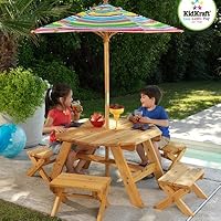 Read Best Reviews of KidKraft Octagon Table & 4 Stools and Multi-Striped Umbrella Here