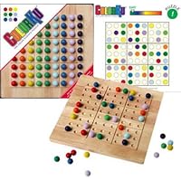 This game is remarkably better than the numerical version of Sudoku. The maker's clever use of color variations (rather than traditional numerical distinctions) makes it more accessible to those who can, at times, fall among the numerically "challenged," even as it provides a completely new challenge to advanced players who may be approaching complacent proficiency with the more traditional numerical version of the game.I was impressed (and surprised, given the price) by the beauty of the wooden board and the tasteful colors of the wooden spheres. Puzzle cards are used to create ranges of difficulty from easy to challenging to "really tough" and they are easy to use.Kudos to the creators of this delightful game, which is also a handsome coffee table accessory.