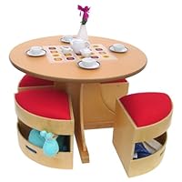 It's really a cute piece of furniture from the picture, but for the price its durability doesn't cut it. Don't buy.I saw this at my child's doctor's office in the waiting room and loved it, so I got online to find it.It is large enough to fit a child up to around 10 unless they are super tall. The storage under each stool is a fantastic idea and the wedge design of the stools fitting under the table is creative.The table is really cute and I assume it is sturdy to hold up to all the kids in a pediatric allergy office.