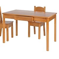 The color (honey) is not stain and transparent finish, but some finish like paint in almost orange, warm tone...we like it a lot, but it was not what I expected from description. Also, one can see the wood pieces through this paint (semi-transparent paint?)...this is also ok with us, it still looks nice. Despite these notes, this is cute looking table and chairs. The chairs are sturdy so that adult can sit on them as well.