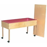 We tried the otherplastic sand/water table in the past. Didn't last longer than one season (we live in the desert). Sun bleached and looking sad after a few months. This table is different: made of sealed wood, it's on wheels, has a solid lid, drain hole, and can be used as a sand or water table for multiple kids at once. We filled ours with rice (got a huge bag from Costco), sunk dinosaur toys inside and used it an an excavating activity (sensory bin) at my daughters dinosaur themed birthday party. Huge hit with the kids. This table will last, unlike the inexpensive plastic models. My girls are 4 years apart so toy longevity is important to us.