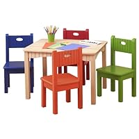 Ukid Natural Wood Activity Table and 4 Bright Chair Set