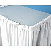 Arrived quickly and good condition.The table skirts were thin and ok for the cost.They did the job I needed them to do.This table skirt is easy to work with and of appropriate thickness. Peel the tape holder, stick on to the side of the table, and voila! Skirted table.
